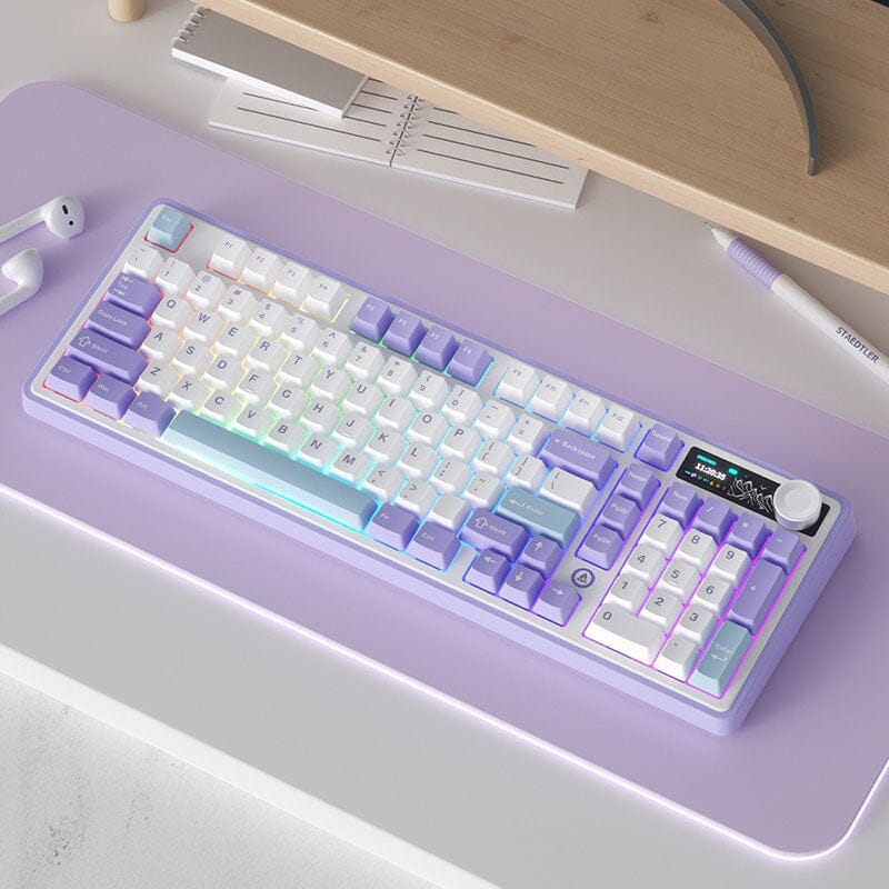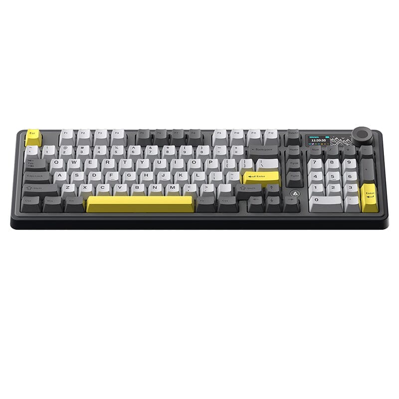 The keyboard's TFT screen provides various information for your convenience, including the time, connection status, battery level, and customizable GIF animations.