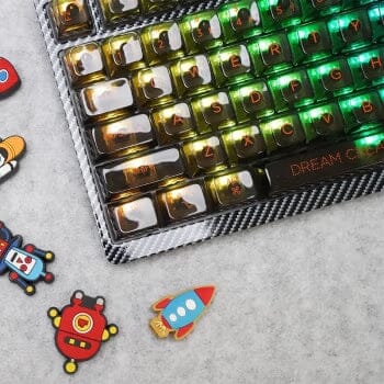 Creating a light and shadow theme with the F96, the keyboard features a carbon-fiber styled top-cover. This gives the keyboard an exquisite premium finish. It matches the Transparent keycaps and creates a unique experience for the users.