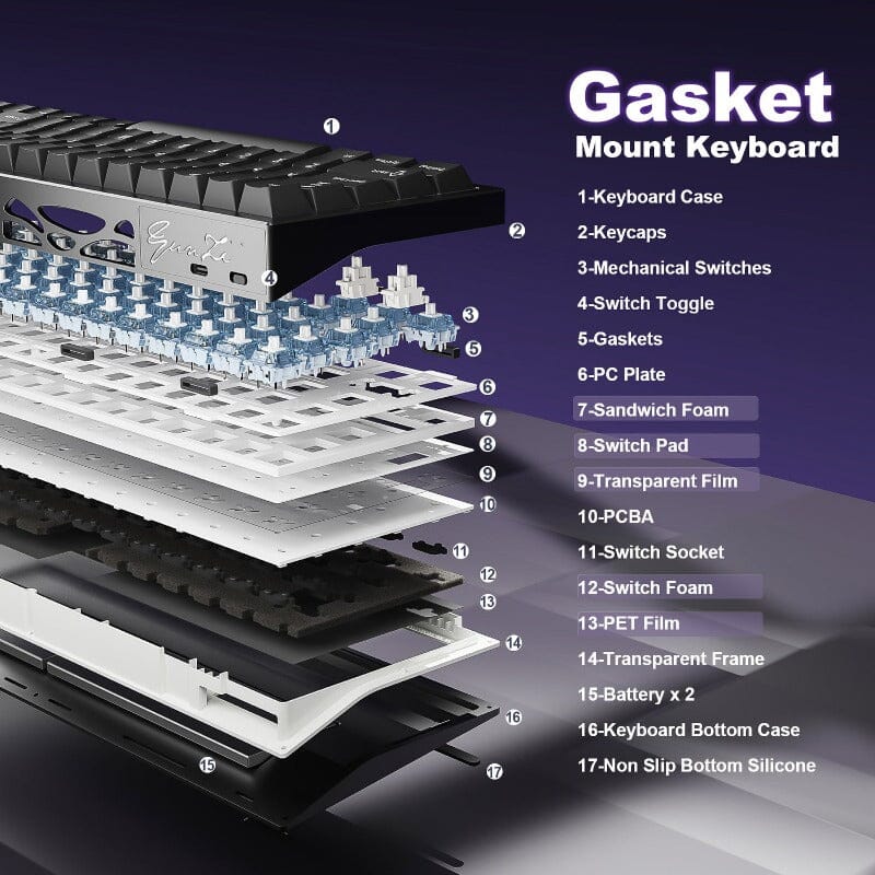 AL65 aluminum 60 percent keyboard features a gasket-mounted structure, delivering cushioned keystrokes and enhanced typing comfort. 5-layer sound-dampening foams of the clicky keyboard reduce vibration and typing noise, offering a quieter, creamy-sounding keyboard. The hot-swappable keyboard supports 3-pin and 5-pin mechanical switches, allowing effortless switch customization.