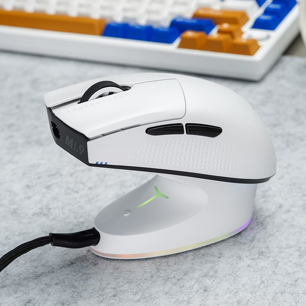 THUNDEROBOT ML9 series has introduced two products the ML901 and the ML903. The primary difference between them lies in the main processor chipset and the return rate. The ML901 has a return rate of 1000Hz while the ML903 supports faster performance with a return rate of up to 4000Hz. You obviously need a 4000hz receiver to unlock the full potential of the ML903. ML903 comes equipped with a faster NORDIC 52820+52840 processor chipset. ML901 has three-zone RGB lighting while ML903 has RGB included in the stand.