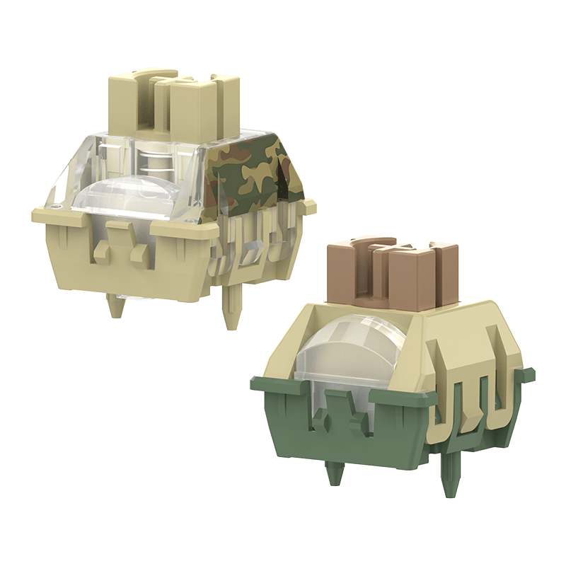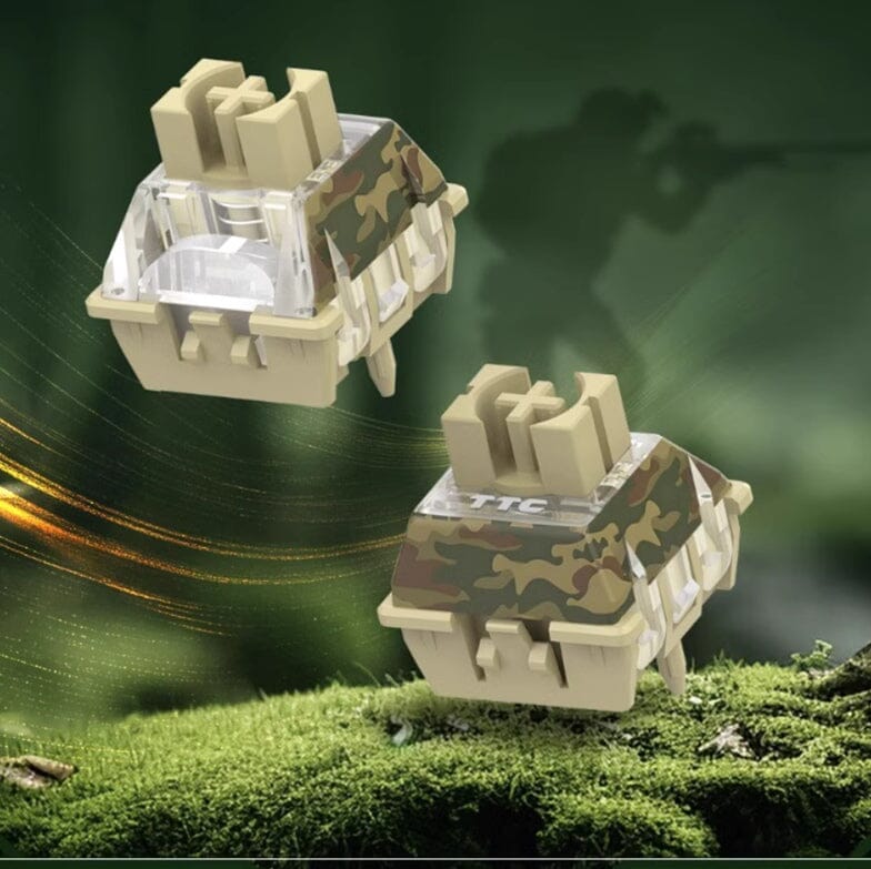 TTC Camouflage series of magnetic switches features a unique color and design theme. The base TTC Camouflage switches feature a blend of three camouflage colors, tea-coloured tree trunks, yellow dead grass, and olive-green deep moss. The TTC Camouflage Pro magnetic switches are one step ahead with a top cover matching the camouflage patterns of a soldier’s uniform.